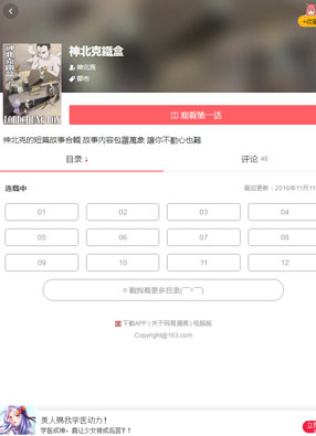 神北克铁盒 2025-07-13 08:26韩漫资源 开始阅读 微信阅读 简介: 《神北克铁盒》漫画简述:用简短的篇幅,精小的故事,讲述人与人之间的温情,神北克从小生长在台湾的一个客家小镇之中,对台湾当地的民俗风情十分了解,尤其是那段经历过的战争时期,也一直在他的脑海之中,因此,他将自己看到的这些事情用画笔记录下来,以画面的形式,保留着人与人之间那深刻的温情... 转载原创漫画请注明,转载自:尾巴漫画网-神北克铁盒(https://biqugem.net/hm/15861.html)