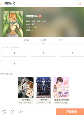 简介:《他的目光》漫画简述:一个生病的无赖少年,在医院遇到了一个闷骚医生,两人谁都瞧不上谁,但谁又没法在短期之内摆脱谁,被迫绑定在一起的两人于是无奈开始了一场鸡飞狗跳的生活,他们的相遇到底是一场幸福的开始还是说不幸的开端??