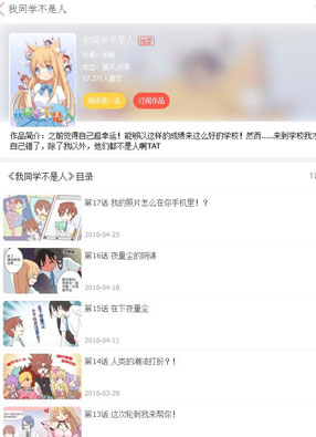 2025-07-22 13:43 开始阅读 微信阅读 简介:《我同学不是人》漫画简述:正值青春年少的扑通少年道璇一直都以为自己十分幸运,不然,他不会被这么一所要求超高的精英学校所录取。但是,来了这所学校之后,他才发现自己想的完全错了,他不是幸运,简直就是不幸,因为录取他的这所学校,除了他之外,其他的同学全部都不是人类啊啊!